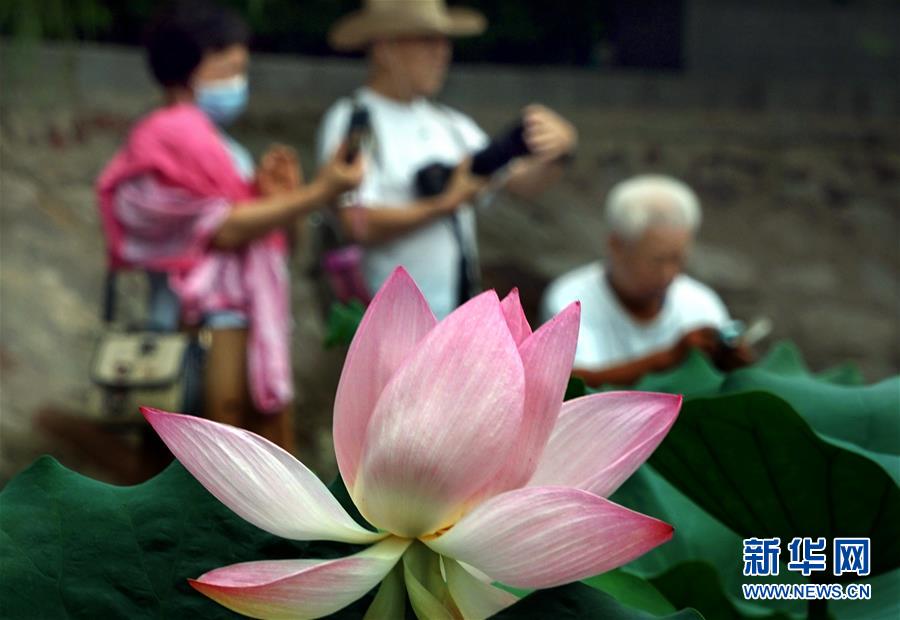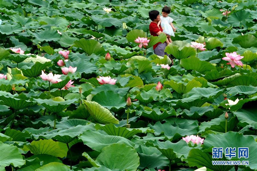 近日,河南郑州紫荆山公园内的荷花陆续绽放,吸引大批市民和游客前来观赏。新华社记者李安摄