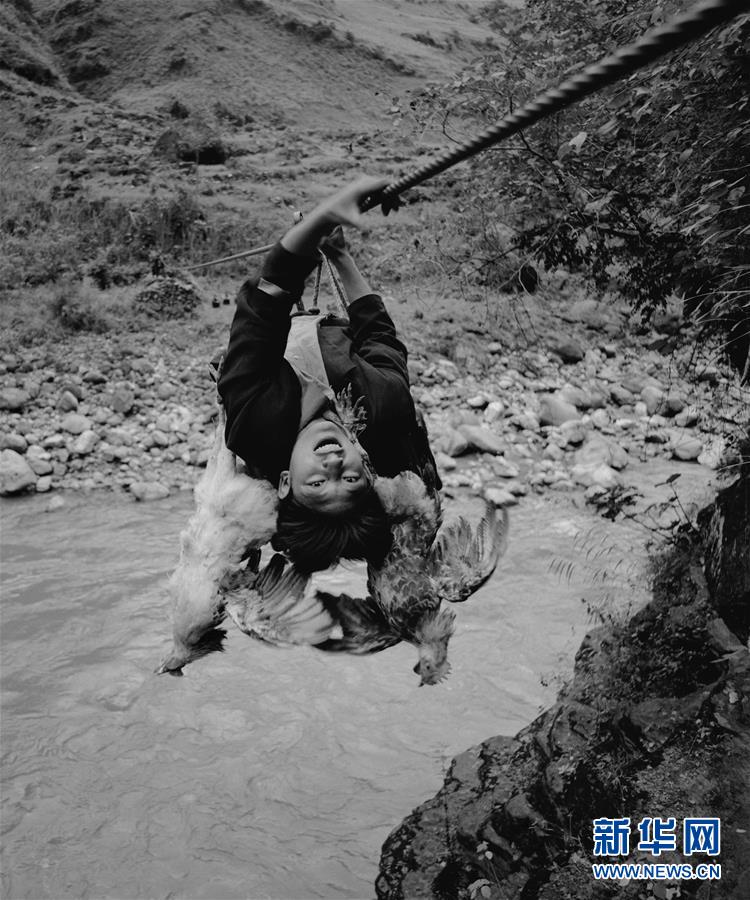 阿达色贵从阿布洛哈村用溜索过西溪河(2006年3月21日摄)。新华社发(林强摄)