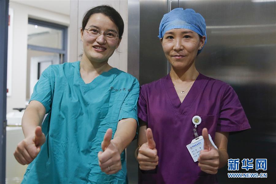 7月3日,中日友好医院检验科新冠核酸检测实验室的闫克芹(左)和张鑫在短暂午休时脱下了防护服。新华社记者张玉薇摄