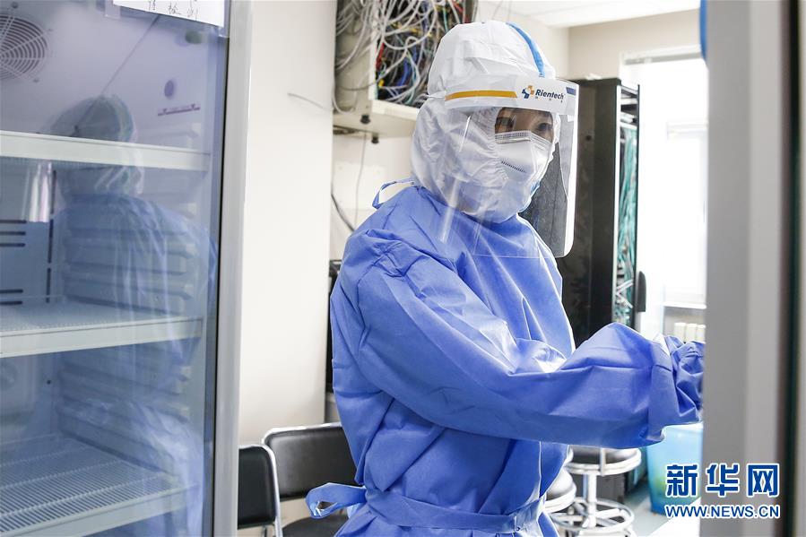 7月3日,中日友好医院检验科新冠核酸检测实验室的检验人员张鑫在实验室内查看样本。新华社记者张玉薇摄