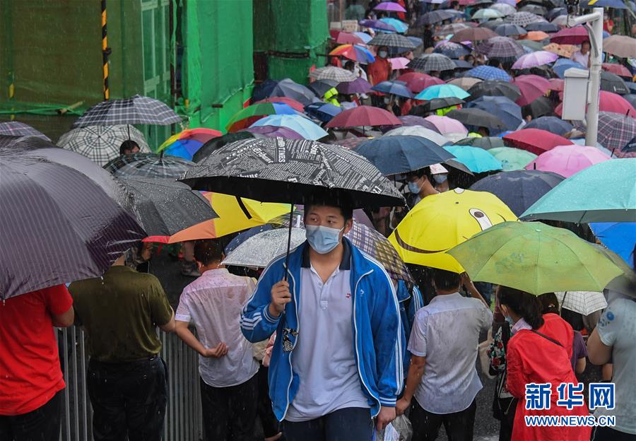 7月7日,在湖北省武汉市东湖中学考点,考生结束首场科目考试后走出考场。当日,2020年高考拉开帷幕。新华社记者程敏摄
