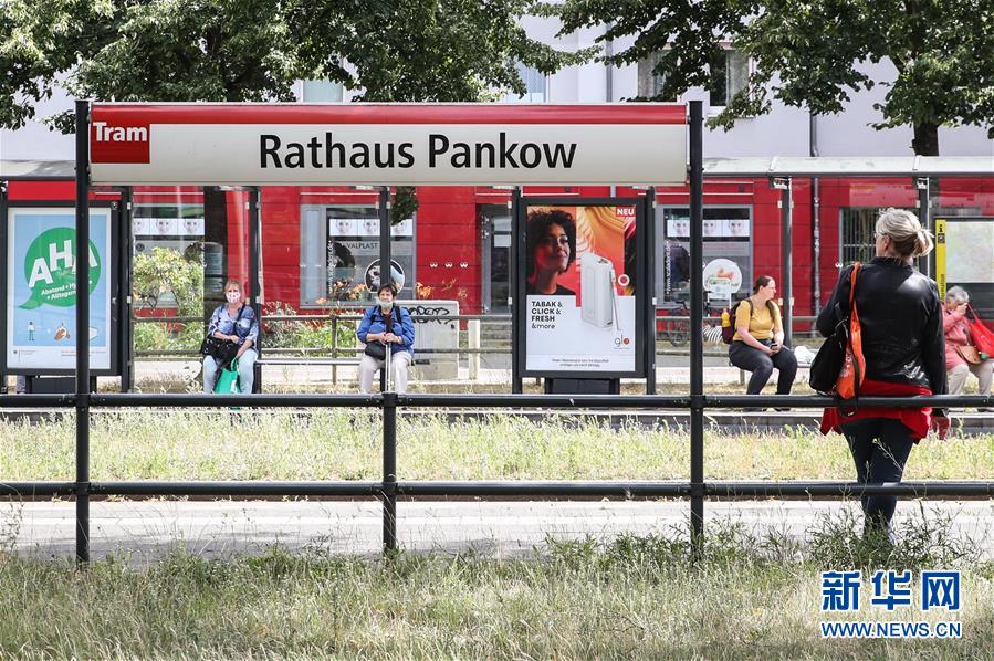 7月7日,乘客在德国首都柏林的一处公交车站候车。针对有地方官员呼吁取消民众乘坐公交车和在商场购物时须戴口罩的规定,德国联邦政府6日表示,支持延续“口罩强制令”。4月底,德国全部16个联邦州陆续出台“口罩强制令”,即居民在乘坐公交车和购物时须佩戴口罩。新华社记者单宇琦摄