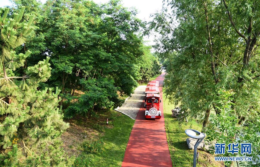 7月7日,游览小火车穿梭在日照阳光海岸绿道内。新华社记者王凯摄