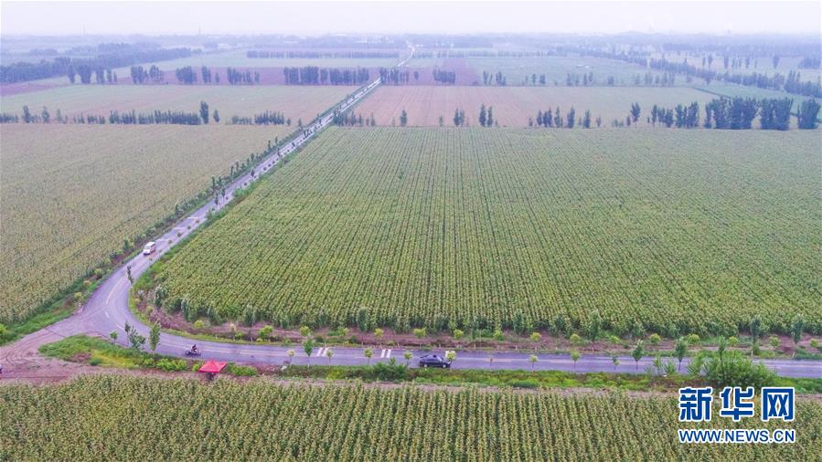 7月9日,车辆在文安县大柳河镇吴石槽村公路上行驶。该条公路建成于2018年,全长4公里,有效助推当地旅游业的发展。(无人机照片)。近年来,河北省文安县推进实施县乡公路改造、窄路基路面拓宽、村社道路硬化、危桥改造、安全生命防护等工程,不断完善农村物流网络,推动城乡交通基础设施互联互通。新华社记者李晓果摄