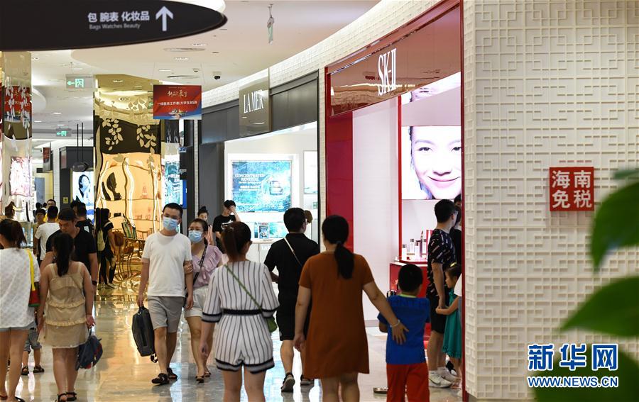 7月12日,游客在海口日月广场免税店购物。新华社记者 杨冠宇 摄