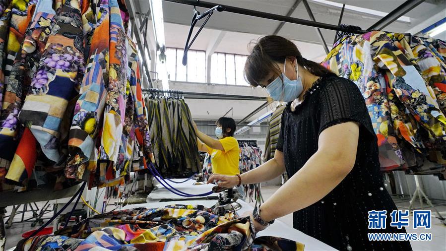 7月13日,河北省迁安市一家服装外贸企业的工人在生产车间内加工服装。近期,河北省迁安市的纺织、钢铁、建材等二十余家外贸企业加紧生产赶制订单,满足市场需求。同时,当地政府通过落实各项惠企政策,加大对外贸企业的帮扶支持力度,助力经济平稳发展。新华社记者 牟宇 摄
