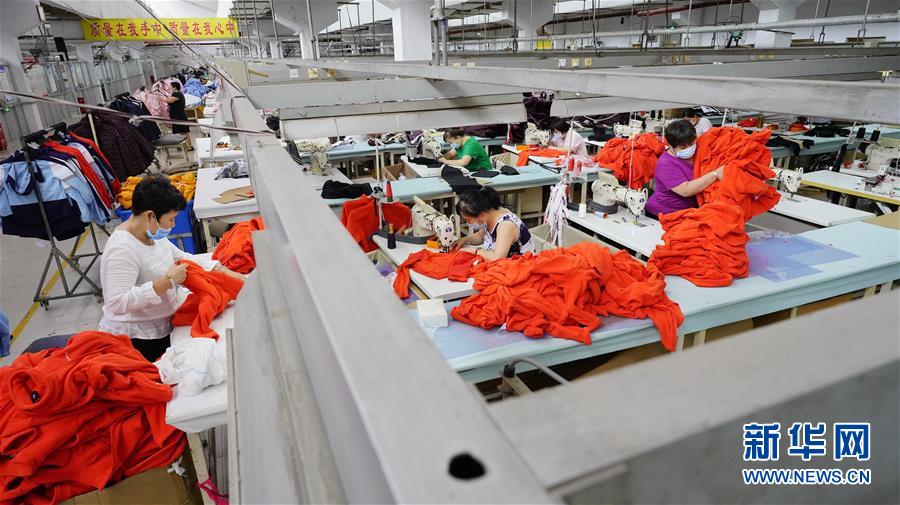 7月13日,河北省迁安市一家服装外贸企业的工人在生产车间内加工服装。近期,河北省迁安市的纺织、钢铁、建材等二十余家外贸企业加紧生产赶制订单,满足市场需求。同时,当地政府通过落实各项惠企政策,加大对外贸企业的帮扶支持力度,助力经济平稳发展。新华社记者 牟宇 摄