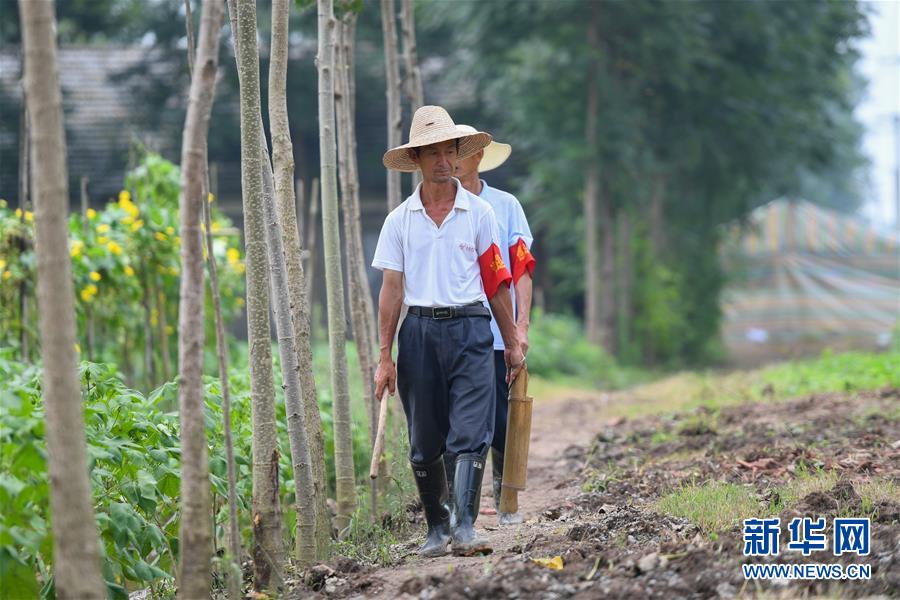 7月20日,在永固垸西线防洪大堤,工作人员巡堤查险。新华社记者陈泽国摄