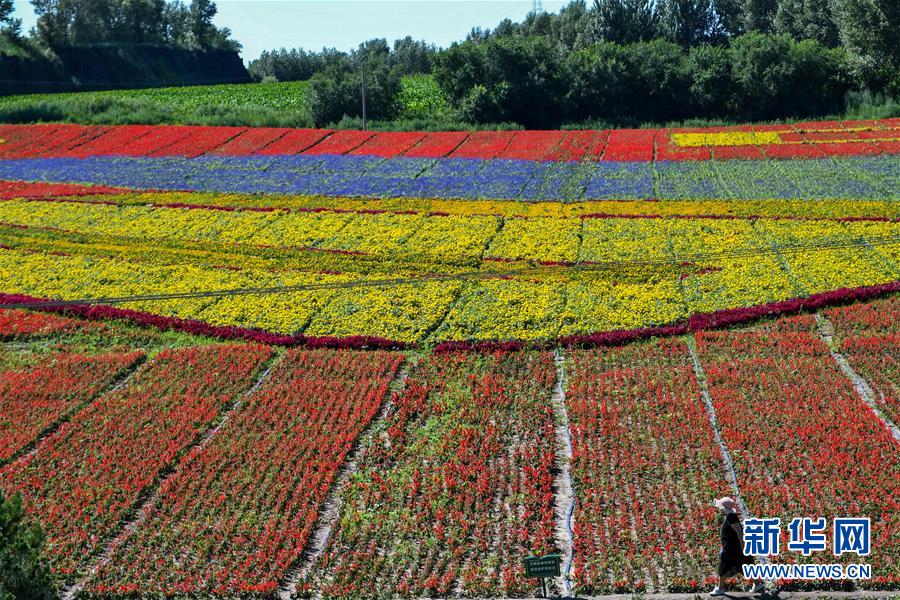 游人在查干湖花海景区游览(7月20日摄)。新华社记者张楠摄