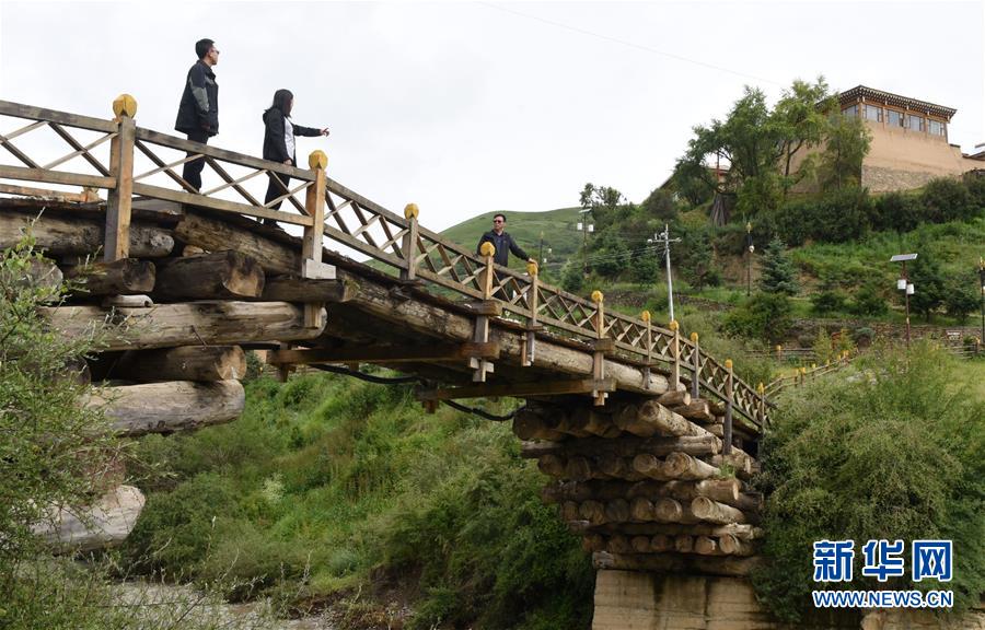 阿坝县查理乡神座村内的伸臂桥(7月5日摄)。新华社记者陈燮摄