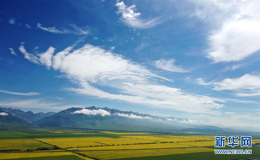 这是7月22日拍摄的门源回族自治县的油菜花田(无人机照片)。新华社记者 张宏祥 摄