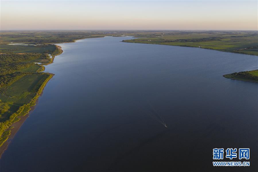 7月24日,渔民在大力加湖中捕鱼(无人机照片)。大力加湖位于“中国东极”黑龙江省抚远市,面积28.5平方公里,两岸地势低平,多湿地、草原,湖内水产丰富。夏日傍晚时分,渔民捕鱼归来,美丽画卷映入眼帘。新华社记者谢剑飞摄