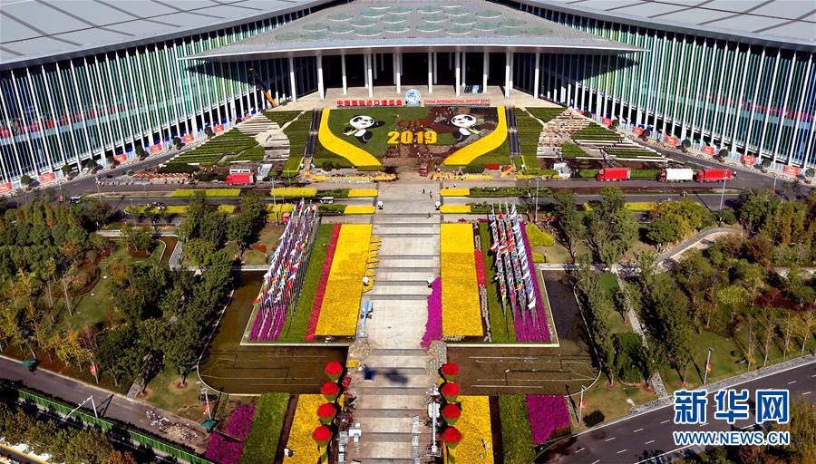 从空中俯瞰国家会展中心(上海)南广场(2019年11月1日,无人机照片)。新华社记者 凡军 摄