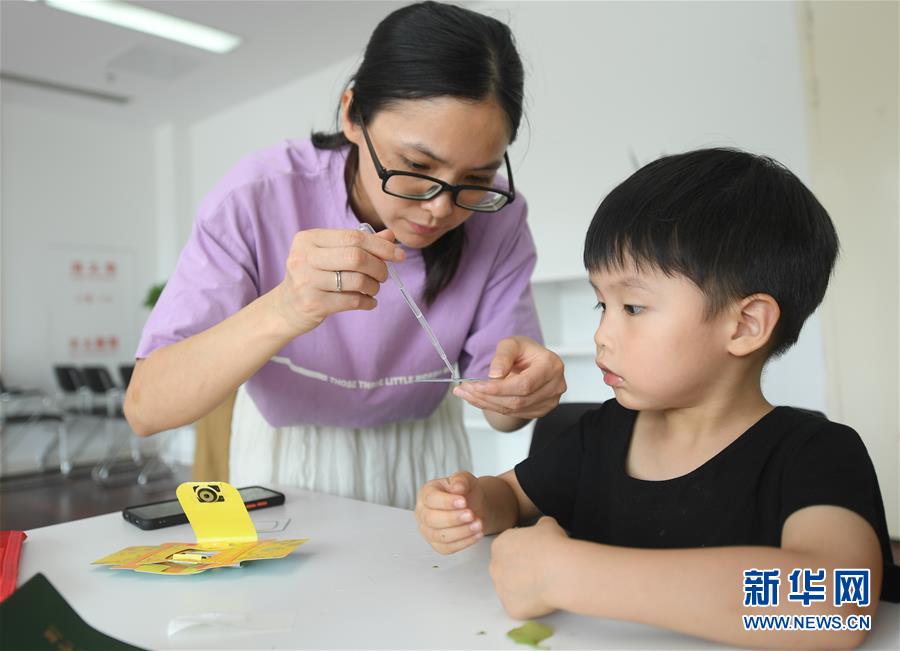 7月27日,导师带领小朋友制作植物标本。新华社记者 翁忻旸 摄