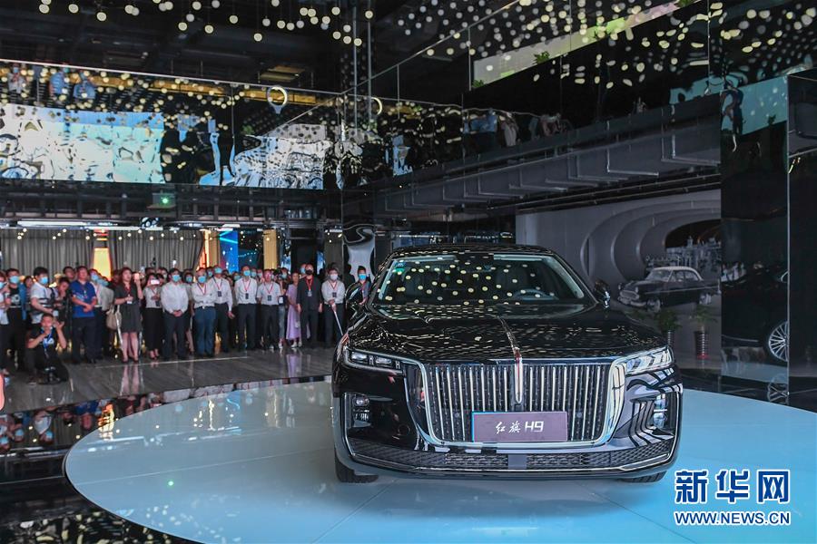 7月28日,参观者参观红旗创新大厦内展出的红旗H9轿车。