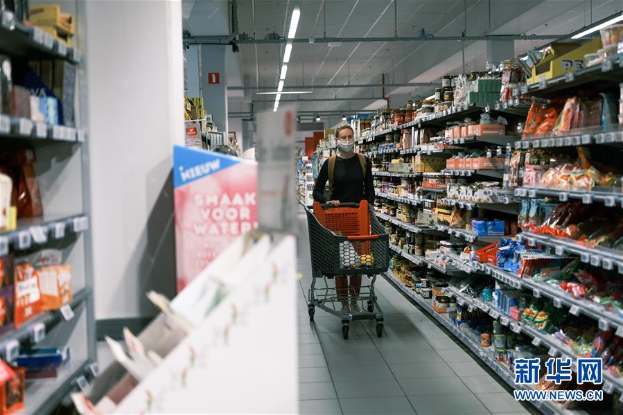 7月29日,一名戴口罩的顾客在比利时布鲁塞尔一家超市采购。为应对近期有所抬头的疫情,比利时政府决定收紧相关防控措施,包括从7月29日至8月底一个家庭能密切接触的亲友人数将由过去的最多15人减至5人;大型活动的人数限额减半;婚礼、宴会等私人聚会最多不超过10人等。新华社记者张铖摄
