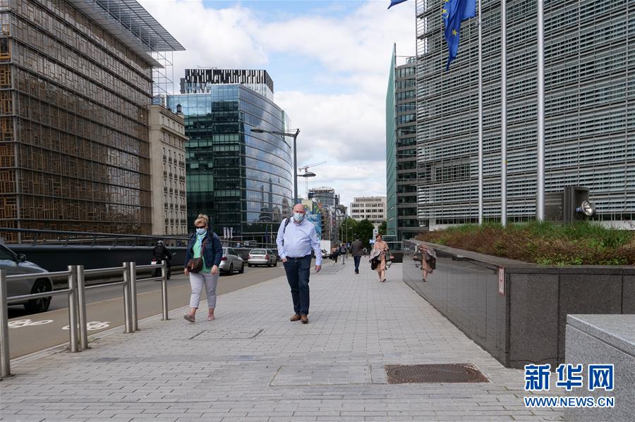 7月29日,在比利时布鲁塞尔,戴口罩的行人经过欧盟委员会总部大楼。新华社记者张铖摄