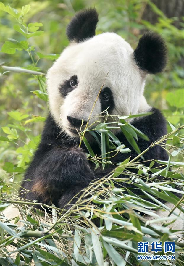 北京动物园的熊猫在乘凉吃竹子(7月30日摄)。炎炎夏日,北京动物园根据动物生活习性,为动物配备了自动喷淋喷雾、空调笼舍、恒温水池、遮阳棚等各类避暑设施,同时还准备了西瓜等降温食品,保障动物平安舒适地度过伏天。新华社记者李欣摄