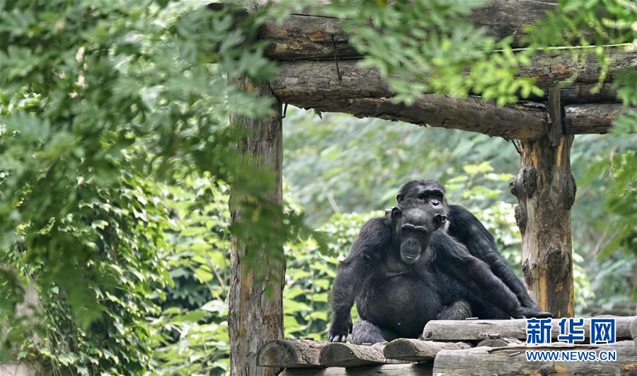 北京动物园的猩猩在乘凉玩耍(7月30日摄)。炎炎夏日,北京动物园根据动物生活习性,为动物配备了自动喷淋喷雾、空调笼舍、恒温水池、遮阳棚等各类避暑设施,同时还准备了西瓜等降温食品,保障动物平安舒适地度过伏天。新华社记者李欣摄