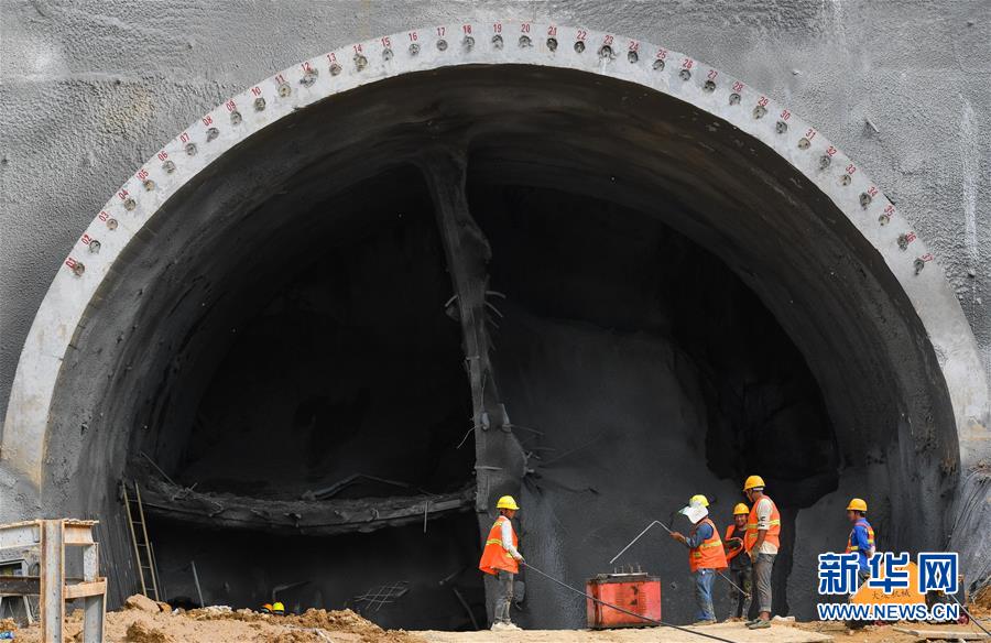 7月30日,中铁四局施工人员在潮州东联络线马头山隧道进行仰拱钢筋焊接。新华社记者刘大伟摄