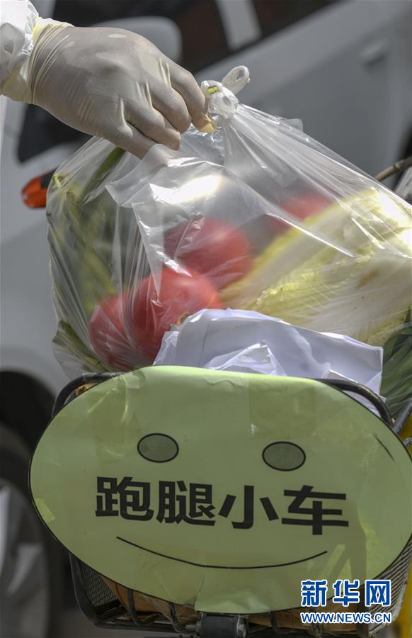8月3日,在乌鲁木齐天山区西河坝前街社区,社区工作人员将居民定制的“菜袋子”放入“跑腿小车”。新疆乌鲁木齐市天山区西河坝前街社区主次干道较多,院落分布分散。新冠肺炎疫情防控期间,社区整合现有资源,将暂时闲置的自行车、电动车集中起来,贴上“跑腿小车”标识,成立便民服务队,社区工作人员通过“跑腿小车”可将居民网络定制的“菜袋子”“药盒子”快速送达,给居民带来方便。新华社记者赵戈摄