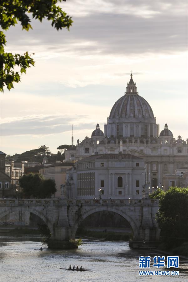 8月4日,人们在意大利首都罗马台伯河上划船。受新冠疫情影响,今年夏天罗马的历史中心区游客比往年明显减少。新华社记者程婷婷摄