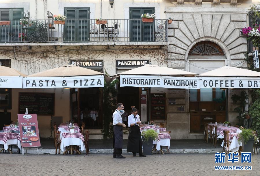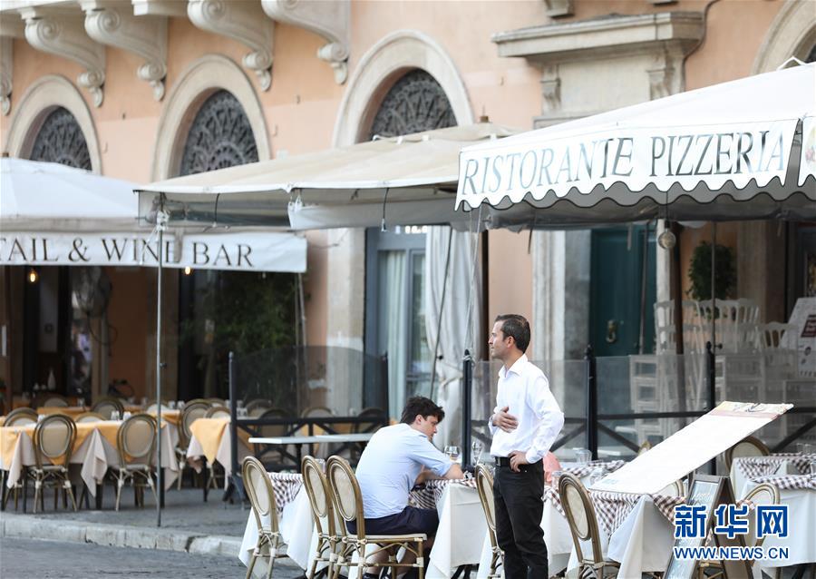 8月4日,人们在意大利首都罗马一家餐厅用餐。受新冠疫情影响,今年夏天罗马的历史中心区游客比往年明显减少。新华社记者程婷婷摄
