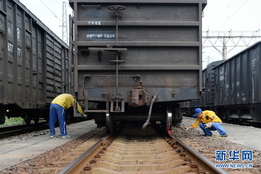 8月6日,合肥运用车间列车检修员对车辆进行检修。合肥市近日持续高温天气。在中国铁路上海局集团有限公司杭州北车辆段合肥运用车间,386名列车检修工人头顶烈日坚守岗位,确保暑运列车的安全运行。据了解,暑运期间,合肥运用车间日均检修列车105列,检修车厢5058节。新华社记者黄博涵摄