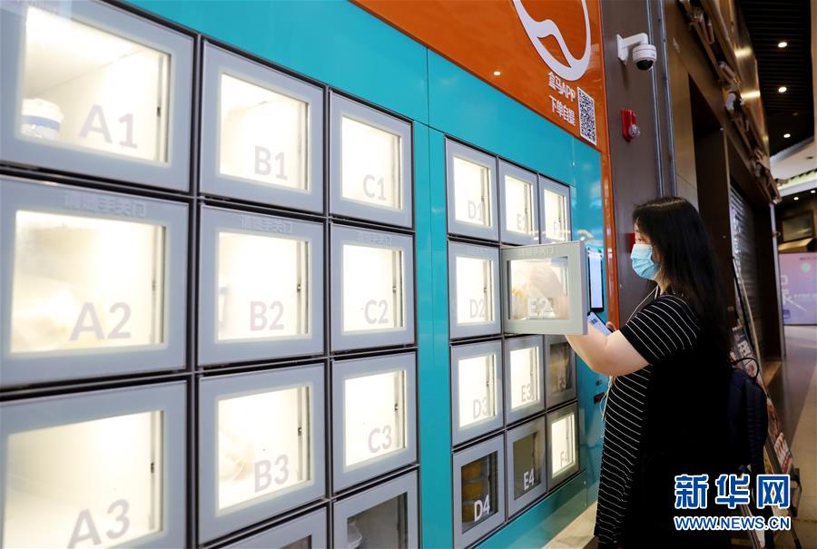 一位顾客通过APP扫码,在上海地铁13号线世博会博物馆地铁站附近的一家盒小马服务点取餐柜中拿取预定的早餐(7月17日摄)。近年来,在上海崛起了一批以盒马、叮咚、拼多多为代表的在线经济新力量,在助力脱贫攻坚、提升城市居民品质生活方面发挥着重要作用。电商加持下的“云农业”加速发展,一端为市民提供更便宜新鲜的农产品,另一端让山区的优质产品加速进入城市餐桌,化解交通不便、农产品滞销等问题。新华社记者方喆摄。