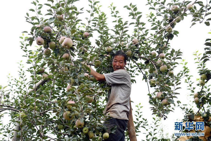 8月8日,果农在昭通洒渔镇一处苹果园劳作。近年来,云南省昭通市确立以苹果产业为主导的现代农业产业发展战略。目前,该市苹果种植面积近80万亩,覆盖全市20余个乡镇,果农种植苹果年人均收入4000元以上,推动30多万果农依托苹果产业实现脱贫致富,半城苹果满城香的“苹果之城”正在乌蒙山区奋力崛起。新华社记者金良快摄。