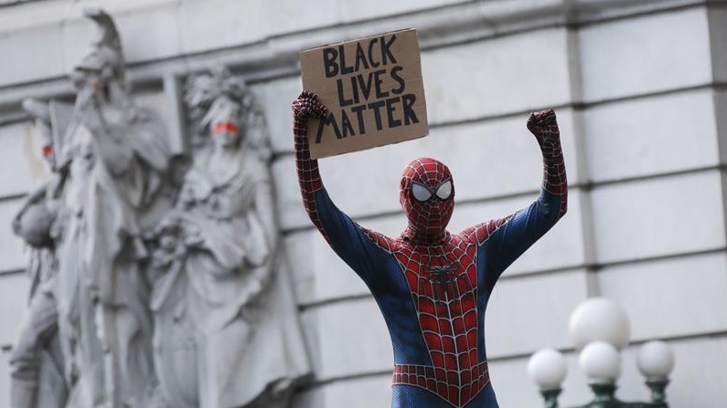 由美国明尼苏达州明尼阿波利斯市非裔男子弗洛伊德遭白人警察暴力执法而死一事引发的各种抗议活动仍在纽约持续进行。