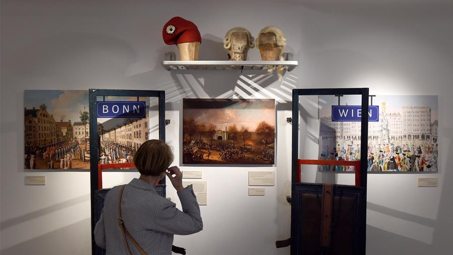 7月2日,游客在奥地利维也纳的贝多芬博物馆内参观。因疫情关闭的奥地利维也纳贝多芬博物馆7月1日起再次开门迎客。