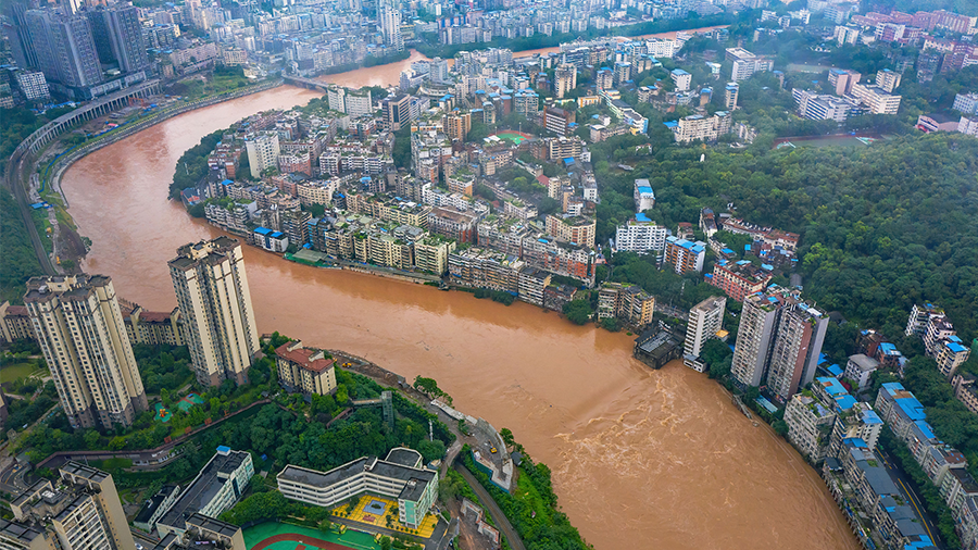 2020年7月1日,重庆市綦江区綦江河水位上涨。