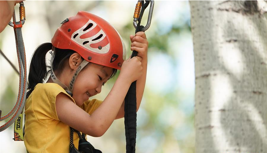 近日,北京天气晴好,小朋友走出家门,享受户外活动带来的乐趣。