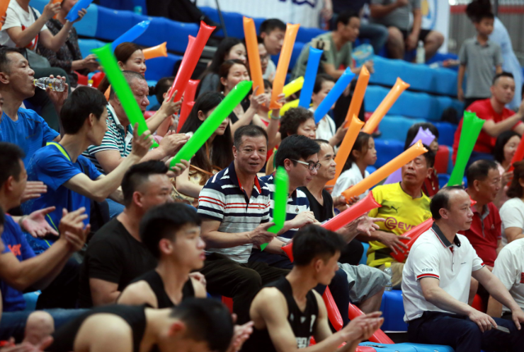 图3:深圳业余篮球氛围浓厚,现场观众为球队加油。