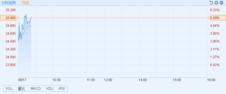 智通财经APP获悉,万科企业(02202)将于8月20日公布中期业绩,早盘股价造好。截至9时51分,涨5.49%,报价25港元,成交额7694.02万。