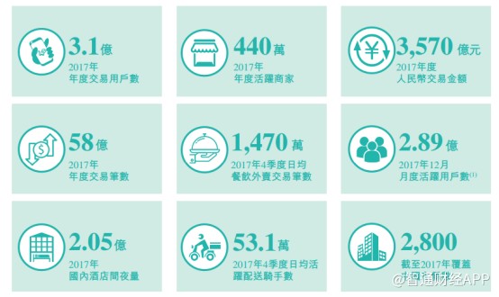 智通财经APP观察到,2017年美团交易额达到3570亿元,同时公司还拥有3.1亿年交易用户以及440万活跃商家。此外,2017年公司MAU数据已达2.89亿。
