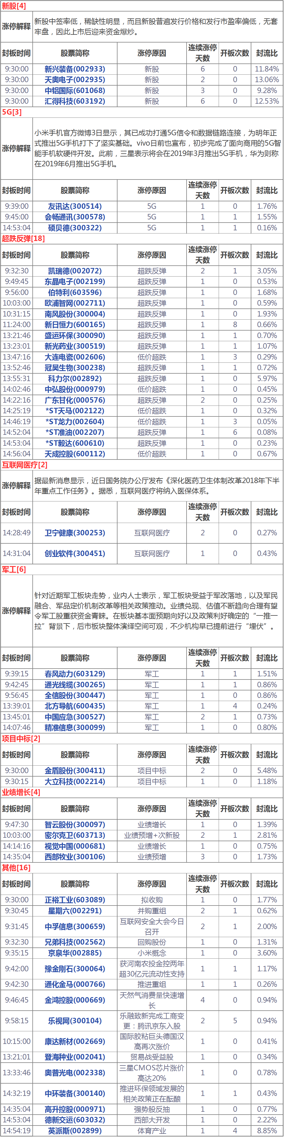 今天涨停家数较上一交易日有所增加,两市55家涨停;跌停8家。成交量方面,沪市成交1137亿元,深市成交1542亿元,两市总成交额约为2679亿元,较上一交易日放量249亿元。盘面上,板块普涨,国防军工、国产软件、互联网医疗等板块涨幅居前。