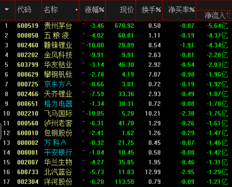 白酒、医药、锂电资金流出较大。