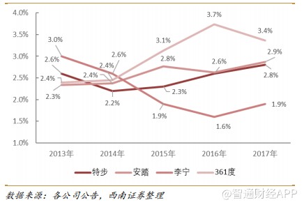 相信长期以来看惯了安踏华丽增长数据的投资者,对特步中双位数增长的同店销售表现不会感冒。但是从特步自身来看,这样的销售数据却显得弥足珍贵。