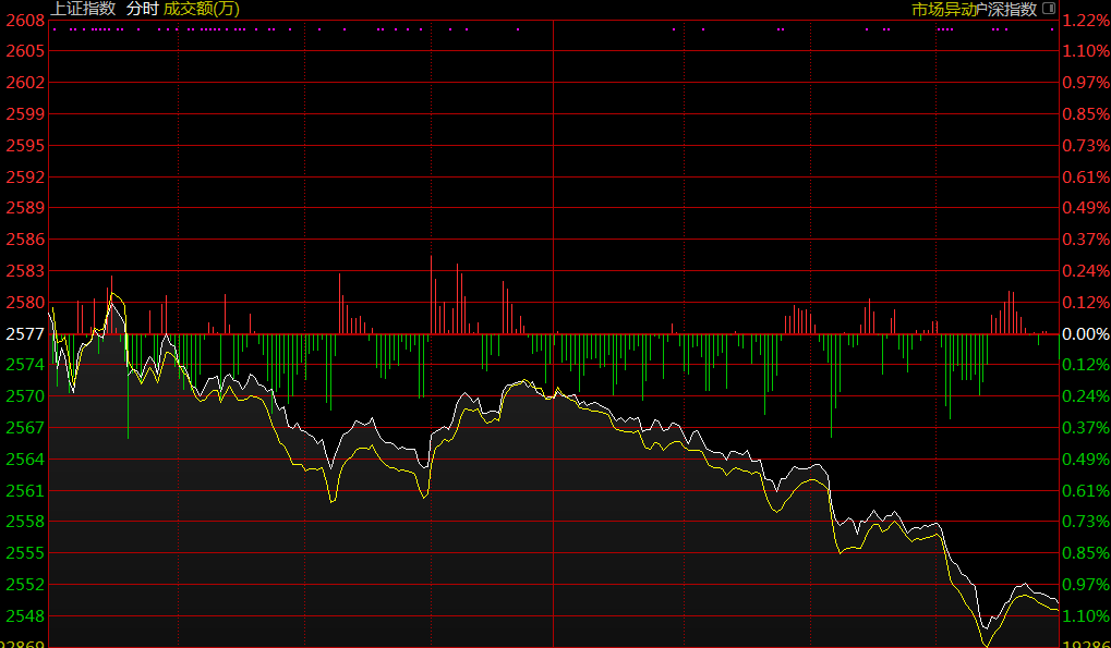 云财经讯,指数今日小幅高开,地产板块早盘冲高带领指数上行,但随后两市快速跳水翻绿。午后指数继续下行,多头毫无抵抗,ST板块、创投概念虽然轮番拉升但难掩大盘颓势。盘面上,个股普跌,涨停25家,跌停5家。板块方面,公共交通、房地产、西安自贸区等板块逆势上涨,石油开采、猪肉、医药等板块跌幅居前。截止收盘,沪指跌1.05%,报2549点;深成指跌1.48%,报7418点;创业板指跌1.90%,报1268点。两市成交较前一交易日缩量。(云财经)