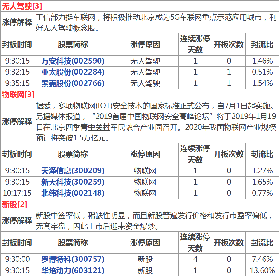 今天涨停家数较上一交易日有所增加,两市70家涨停;跌停8家。成交量方面,沪市成交1224亿元,深市成交1738亿元,两市总成交额约为2962元,较上一交易日缩量172亿元。盘面上,次新股、氢燃料电池、超导等板块涨幅居前,港口航运、彩票、智能音箱等板块跌幅居前。