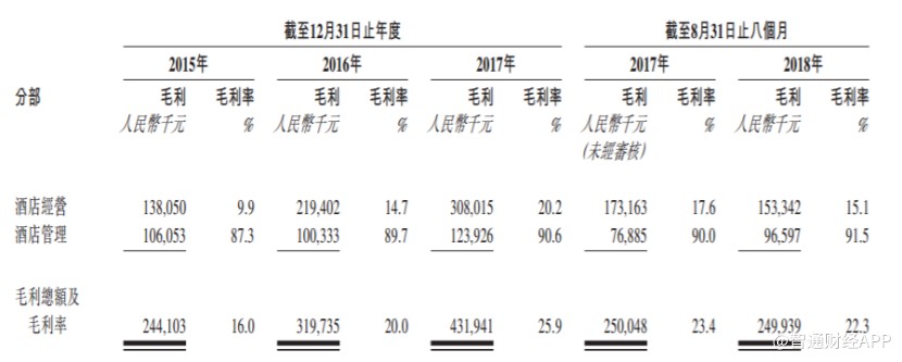 招股书显示,截至2018年8月底,公司酒店经营业务下拥有31家酒店,其中29家租赁酒店和2家自营酒店;公司酒店管理业务下拥有109家酒店,其中96家为全方位服务管理酒店及13家特许经营酒店。