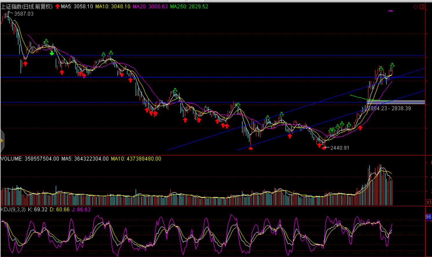 技术面:高位震荡,区间运行,成交萎缩显示短期反向不明。沪综指3040--3100点区间、创业板1600--1700点区间运行。