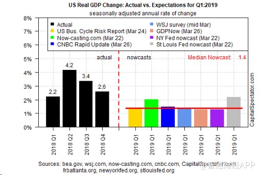 周四最新出炉数据显示,美国去年第四季度GDP放缓程度超预期,终值年化季环比增速下修至2.2%。据预估数据显示,2019年第一季度美国GDP数据可能会继续下滑,即或将连续三个季度下跌。