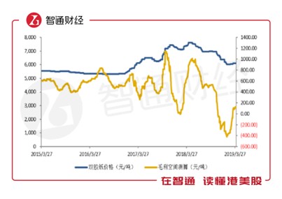从历史数据的角度分析,造纸行业的产销量、价格等关键指标与宏观经济息息相关。智通财经APP观察历史数据得知,机制纸的产销量与PMI指数走势基本一致,2016年一季度起连续八个季度,PMI均处于荣枯线50以上,造纸行业产、销量始终保持正增长;进入2018年一季度开始,PMI指数开始下行,四季度跌落到荣枯线以下后,机制纸产、销量也随之转负。