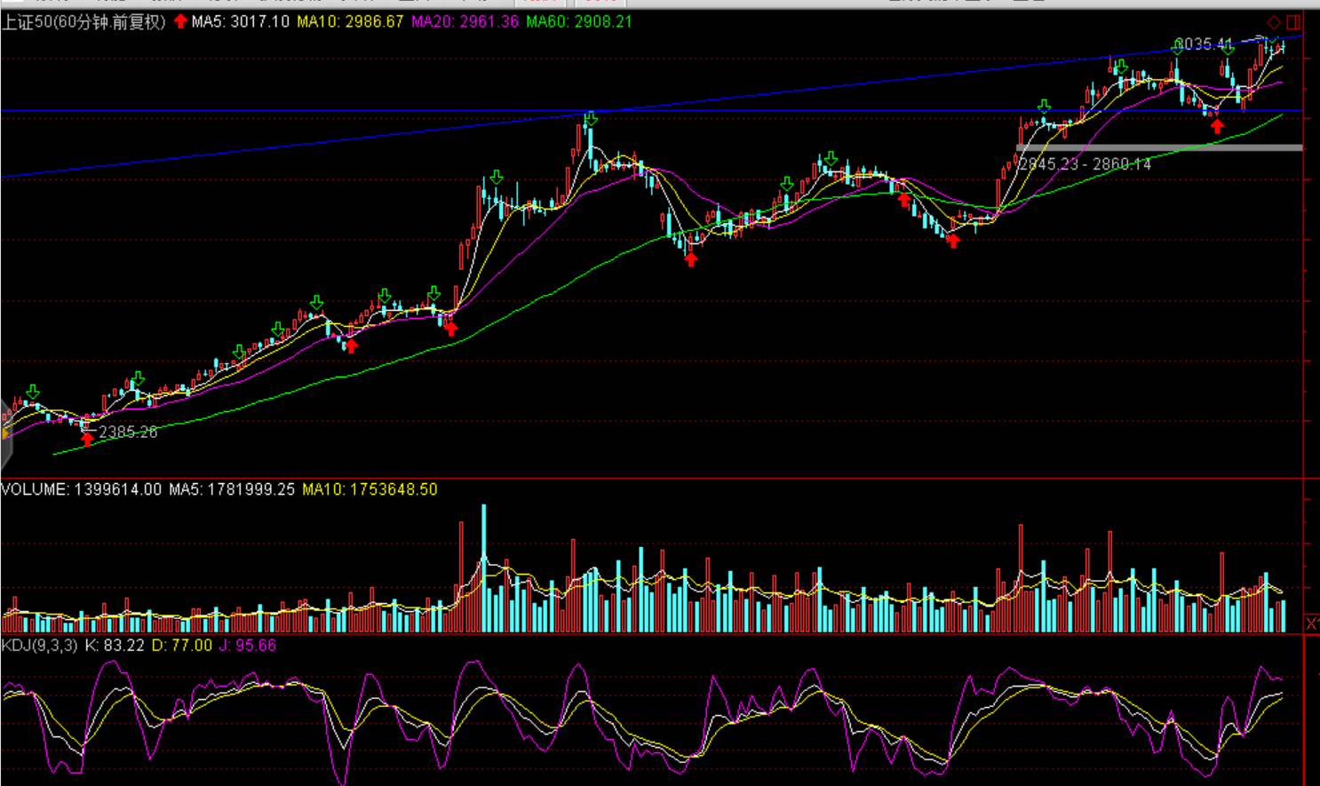 技术面:指数短期震荡加剧,上证50指数60分钟遇阻、沪综指、创业板短期仍有小幅反弹动力,预计今日大盘冲高回落,小阴报收。