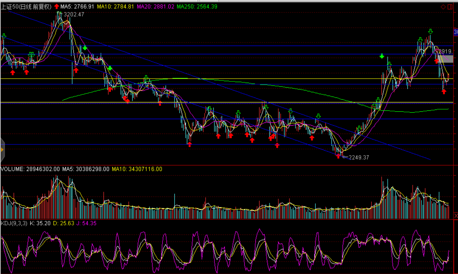技术面:短期技术性超跌反弹接近尾声,上证50、沪综指、创业板短期压力2820点、2963点、1550点一线。