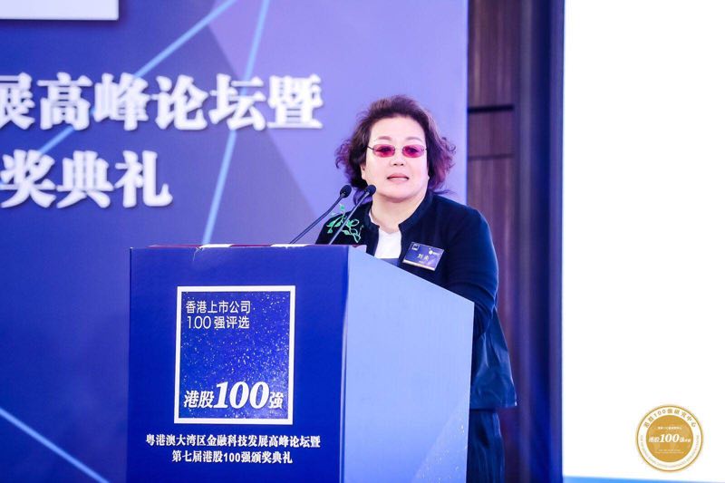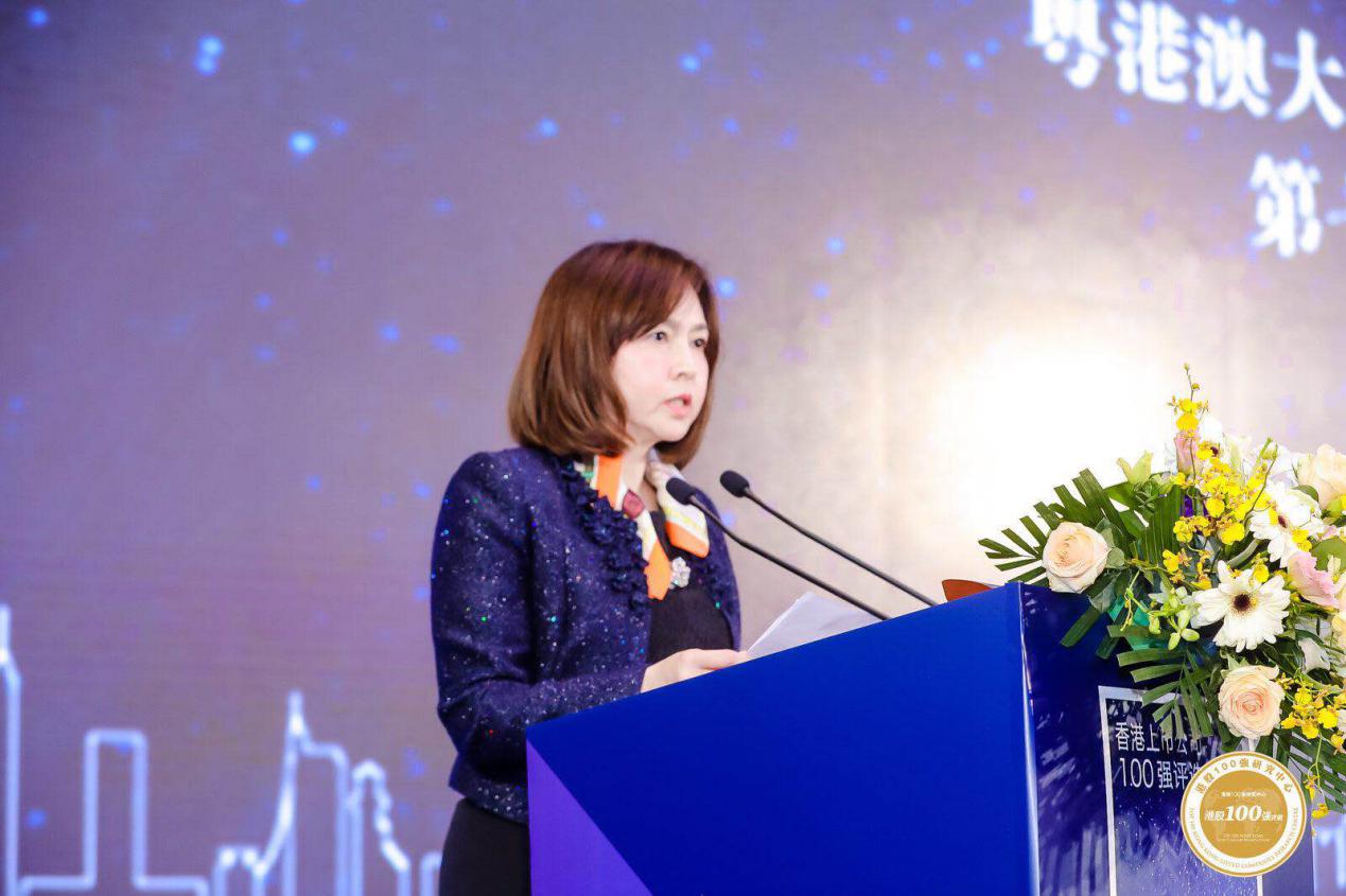 港股100强研究中心荣誉赞助人劳玉仪女士在开幕式致辞,在向出席盛会的嘉宾致以敬意的同时,劳玉仪女士强调,未来“港股100强”榜单将与粤港澳大湾区进行对接,推进内地与香港资本市场的互联互通。