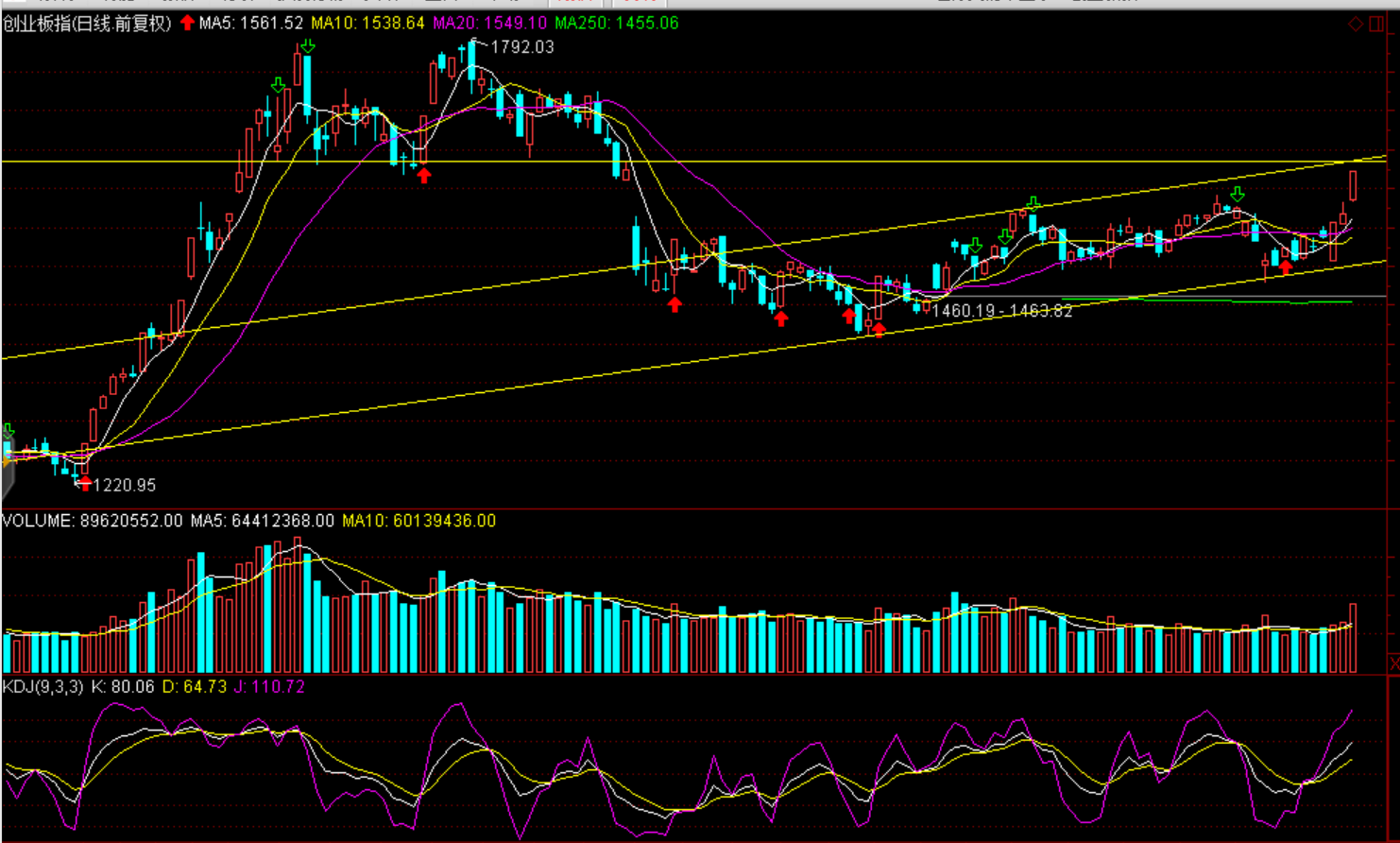 技术面:放量反弹,沪综指触及自7月初以来下降通道上轨,60分钟KDJ高位,短期谨慎封补8月1日、2日跳空缺口受阻;创业板突破自7月以来平台整理,短期面临自6月10日以来上升通道上轨压力,谨慎受阻;预计今日股指受阻回落。